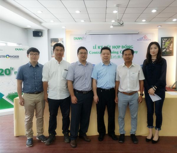 圣戈班集團越南區總經理Mr. Robin,協富公司廠長Mr.Le Huu Sang、總顧問Mr. Huynh Vinh Hue,武漢院新材事業副部長白鋒、項目經理楊波、商務經理王琛、邵燁等參加了簽約儀式。