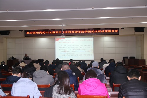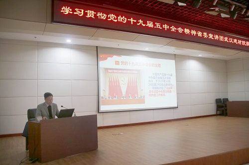 為深入學(xué)習(xí)貫徹黨的十九屆五中全會(huì)精神,按照省政府國(guó)資委黨委統(tǒng)一部署,12月15日上午,公司召開學(xué)習(xí)貫徹黨的十九屆五中全會(huì)精神省委宣講團(tuán)報(bào)告會(huì)。省委宣講團(tuán)成員、武漢大學(xué)經(jīng)濟(jì)與管理學(xué)院范如國(guó)教授來(lái)公司作宣講報(bào)告。會(huì)議由黨群工作部部長(zhǎng)鄭雯主持,公司領(lǐng)導(dǎo)、黨員干部共計(jì)70余人參加宣講報(bào)告會(huì)。