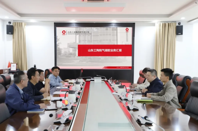 4月7日,武漢建筑材料工業設計研究院有限公司黨委書記白寧、研發中心主任秦賀勝、研發工程師李陽一行到山東工陶院調研,雙方就氣凝膠材料與新型建材結合應用展開座談交流。